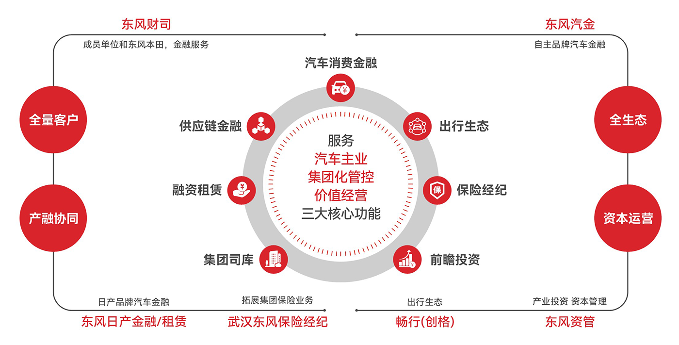 圍繞汽車(che)産(chan)業全價值鏈,形成(cheng)了(le)“4+2”的(de)事業布跼(ju)