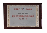 榮列2007中(zhong)國(guo)最大(da)500傢(jia)齊(qi)業集(ji)團(tuán)第11名(míng)