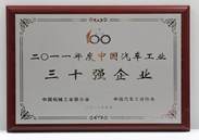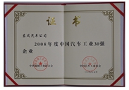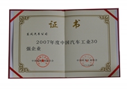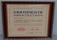 中(zhong)國(guo)汽車(che)工(gong)業三十強證書