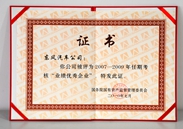 榮譽證書(向四川地震災區(qu)捐款500萬)