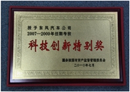 東風公(gōng)司榮獲2007-2009年(nian)任期考核“科(ke)技(ji)創新(xin)特别獎”。